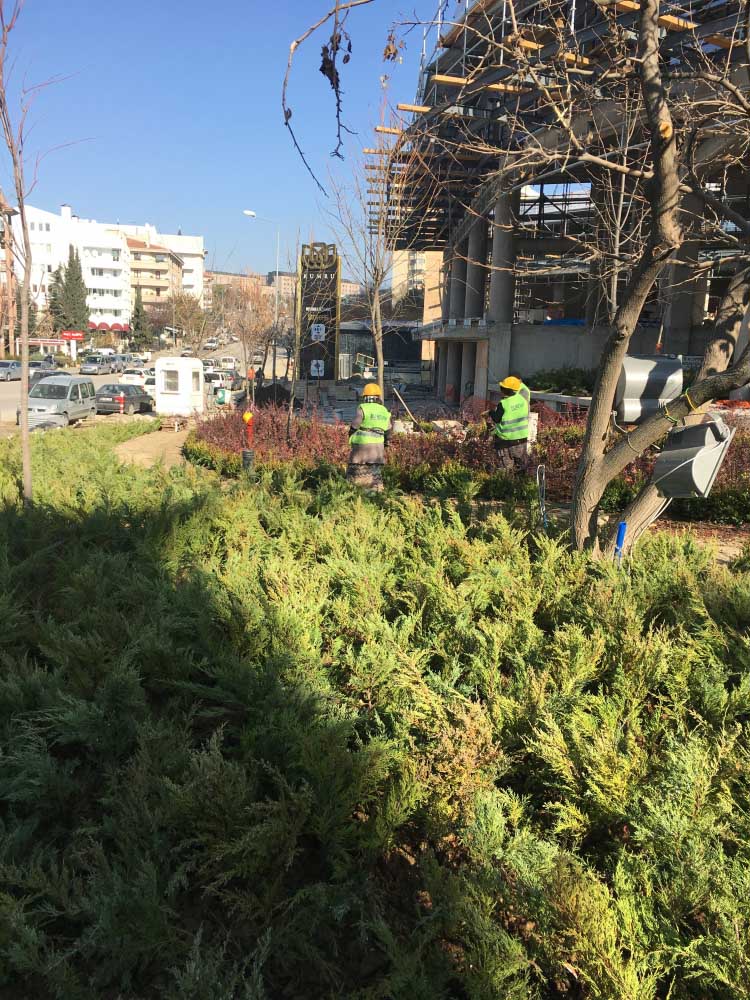 YAPISAL VE BİTKİSEL PEYZAJ İŞLERİ TAAHHÜDÜ BİR ADET KONUTBLOĞU ,İKİ ADET TİCARET BLOĞU 2700 m² yeşil alan, sert peyzaj , donatı elemanları, ve dekoratik metal ve fiber saksılar alana yerleştirilmiştir.