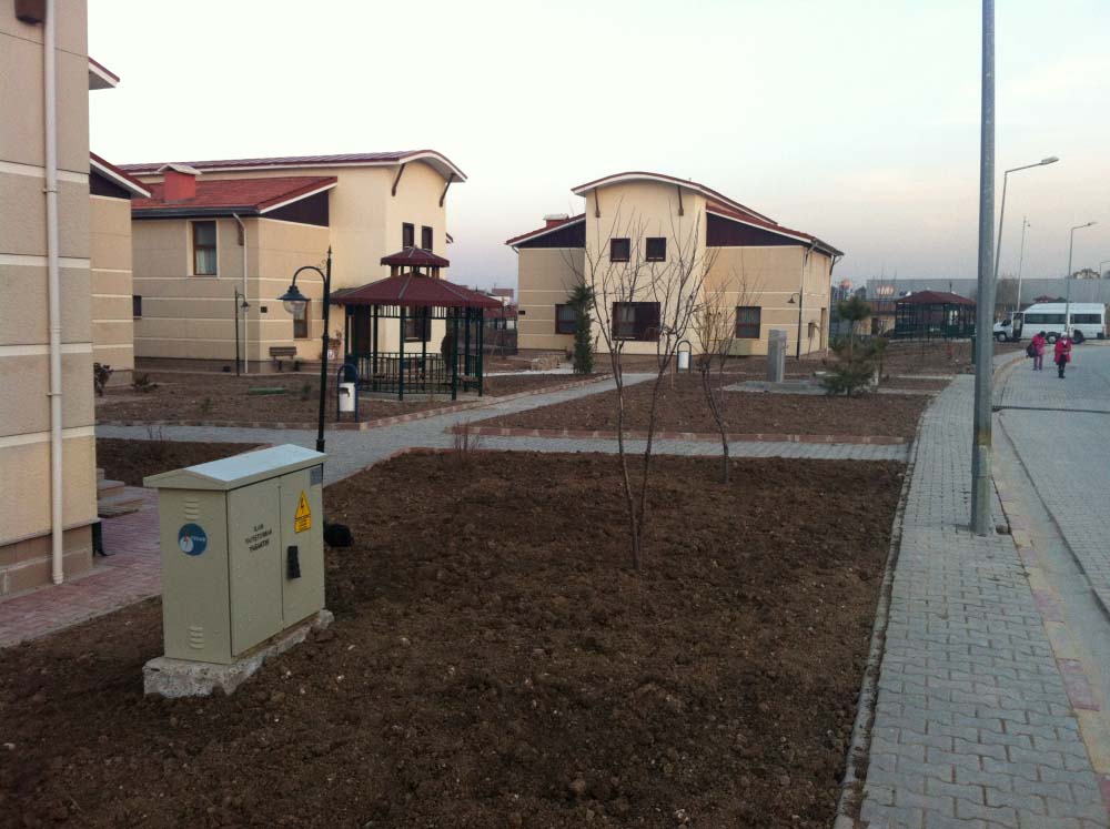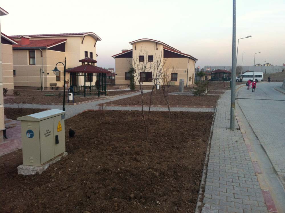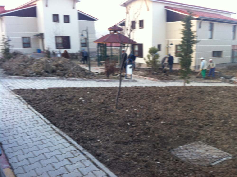 SEVGİ EVLERİ PEYZAJ YAPIMI 8500 M2 YEŞİL ALAN VE OTOMATİK SULAMA SİSTEMİ KURULMUŞTUR.