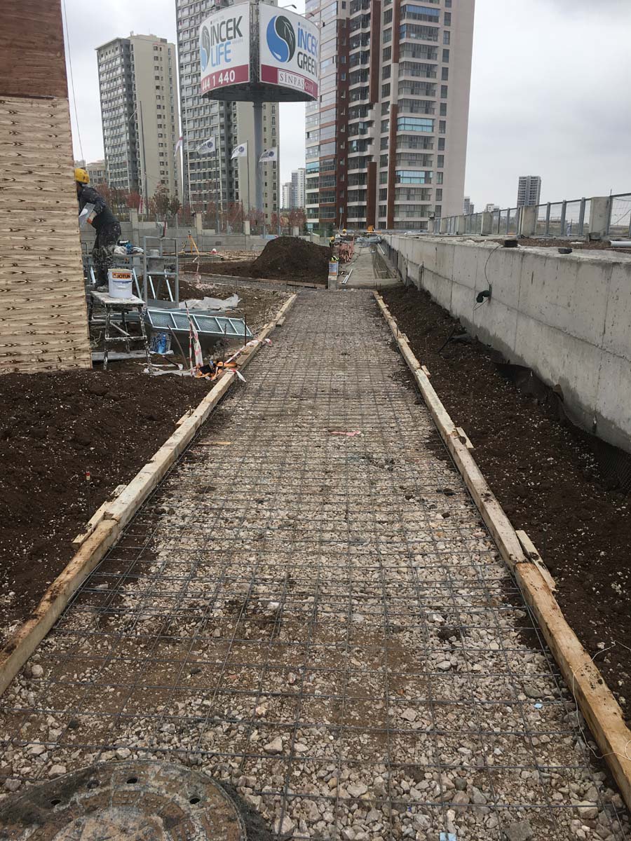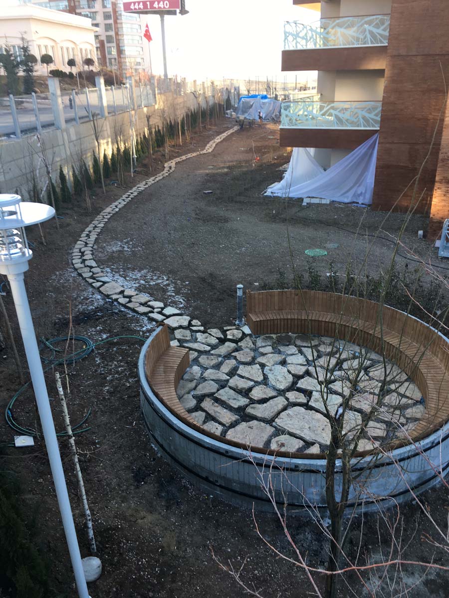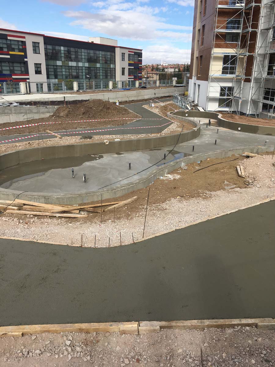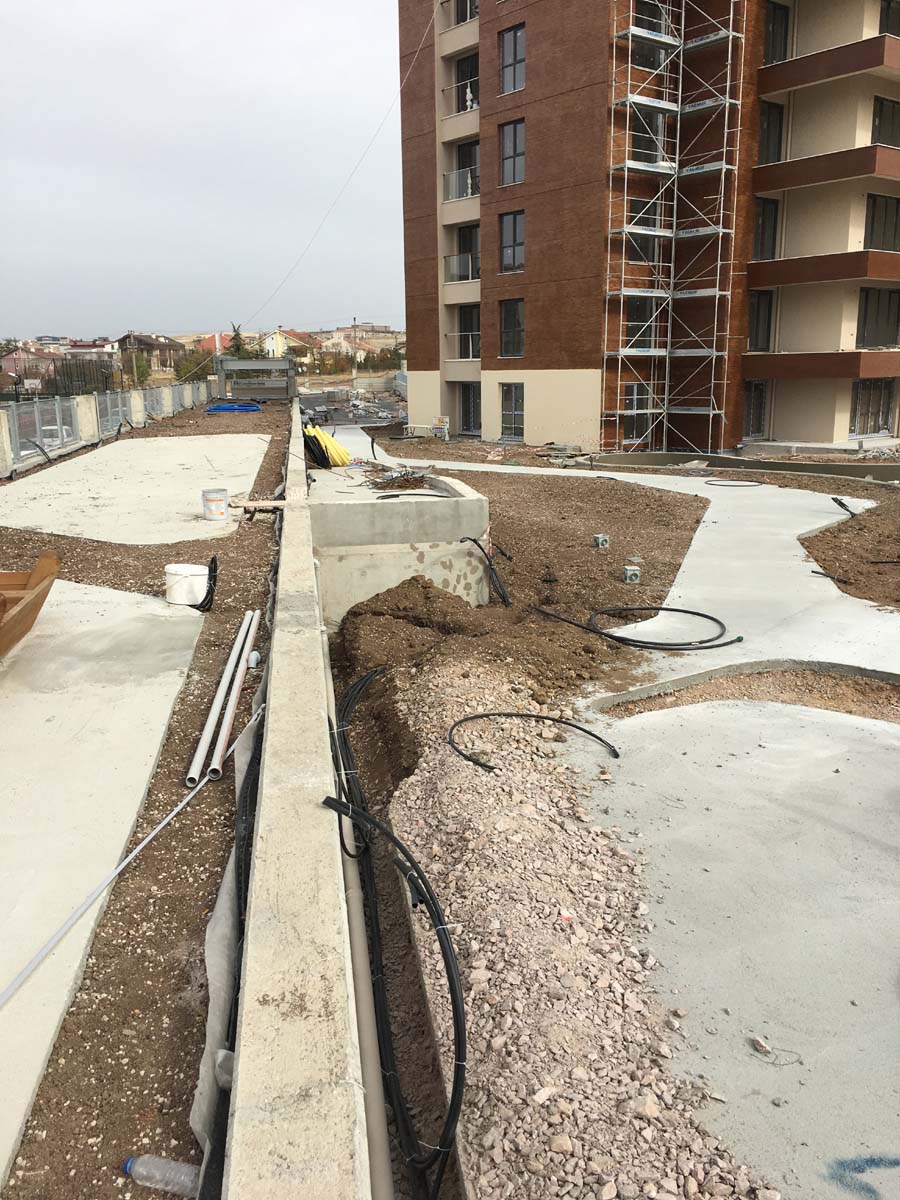 ANKARA /YENİMAHALLE YAPISAL VE BİTKİSEL PEYZAJ İŞLERİ TAAHHÜDÜ 130 KONUT 3250 m² yeşil alan, Sert peyzaj , Süs havuzu ,donatı elemanları , çocuk oyun ekipmanları uygulanması işini kapsamaktadır.