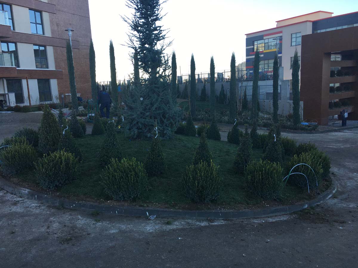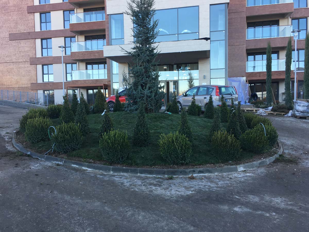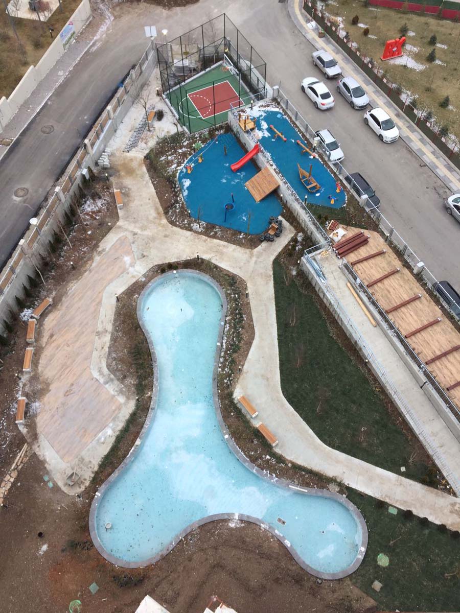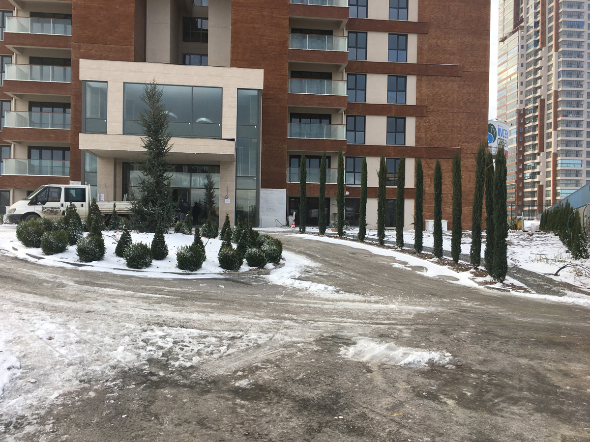 ANKARA /YENİMAHALLE YAPISAL VE BİTKİSEL PEYZAJ İŞLERİ TAAHHÜDÜ 130 KONUT 3250 m² yeşil alan, Sert peyzaj , Süs havuzu ,donatı elemanları , çocuk oyun ekipmanları uygulanması işini kapsamaktadır.